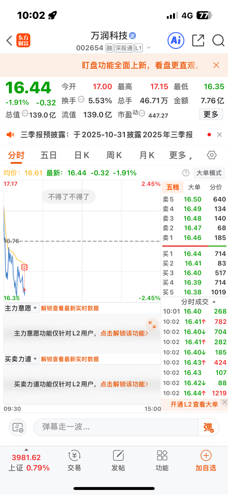 $万润科技(SZ002654)$ 加了一笔万润科技,就这样吧
