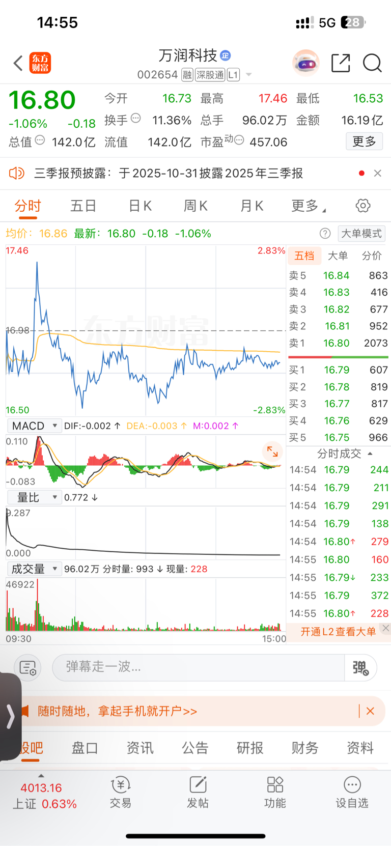 $万润科技(SZ002654)$ 今天这走法,我管它叫,拉肚子之前憋口大的