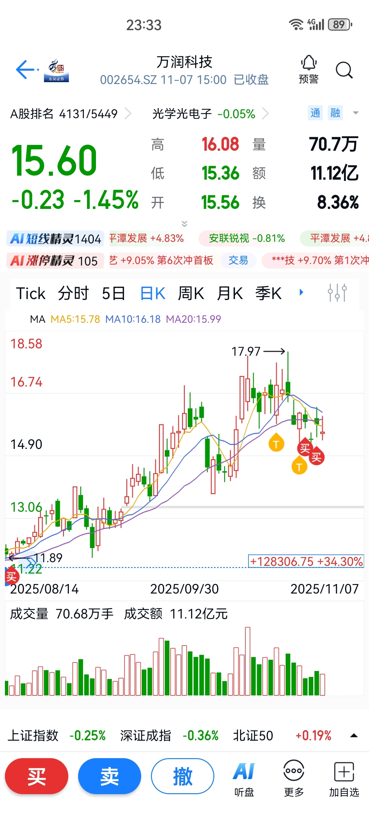 $万润科技(SZ002654)$ 刚刚接回来,怎么都说要大跌啊!明日怎么办?