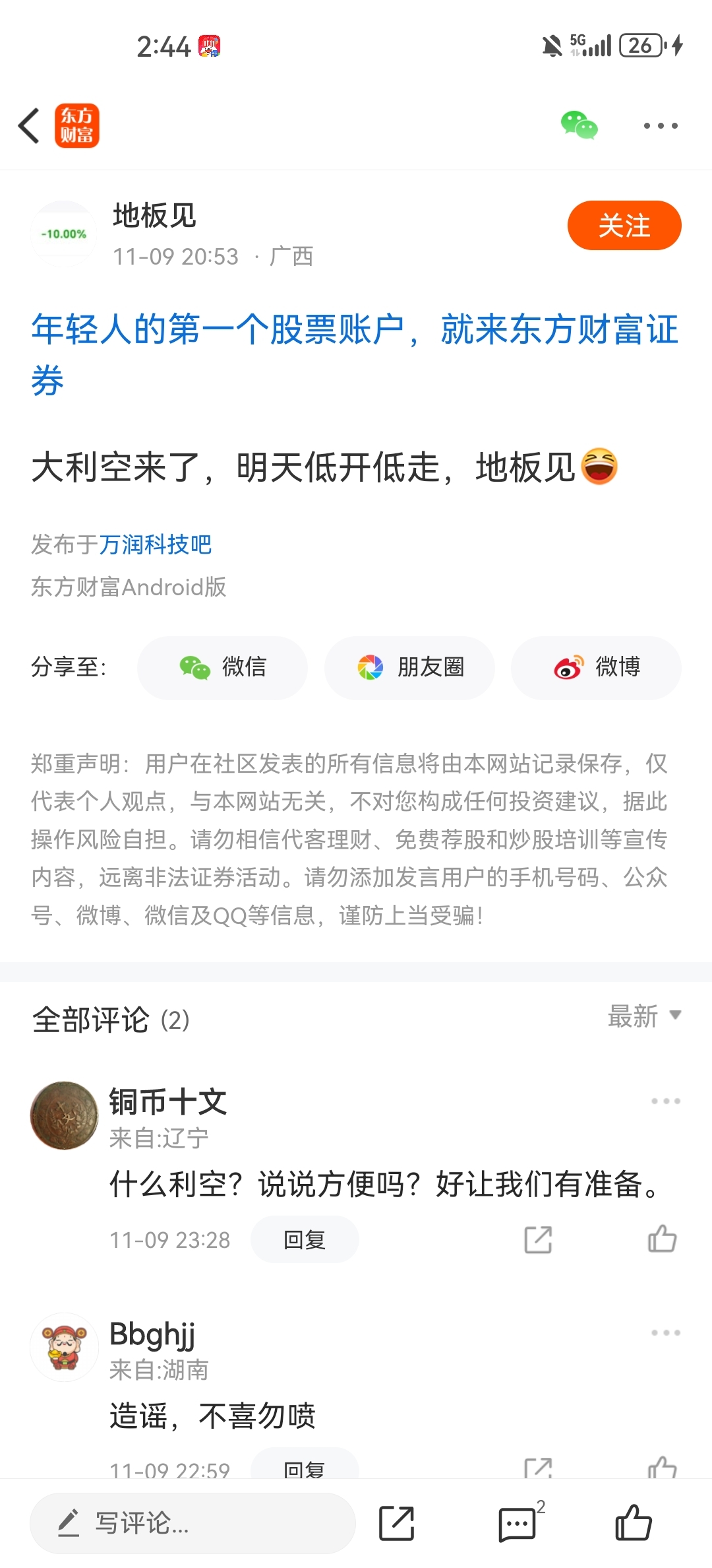温馨提示: 1.根据《证券法》规定,禁止编造、传播虚假信息或者误导性信息,扰乱证券市场;2.用户在本社区发表的所有资料、言论等仅代表个人观点,与本网站立场无关,不对您构成任何投资建议。用户应基于自己的独立判断,自行决定证券投资并承担相应风险。《东方财富社区管理规定》