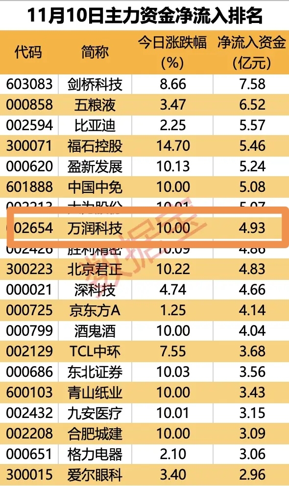 $万润科技(SZ002654)$ 主力资金流入4.93亿!不相信明天你不板!