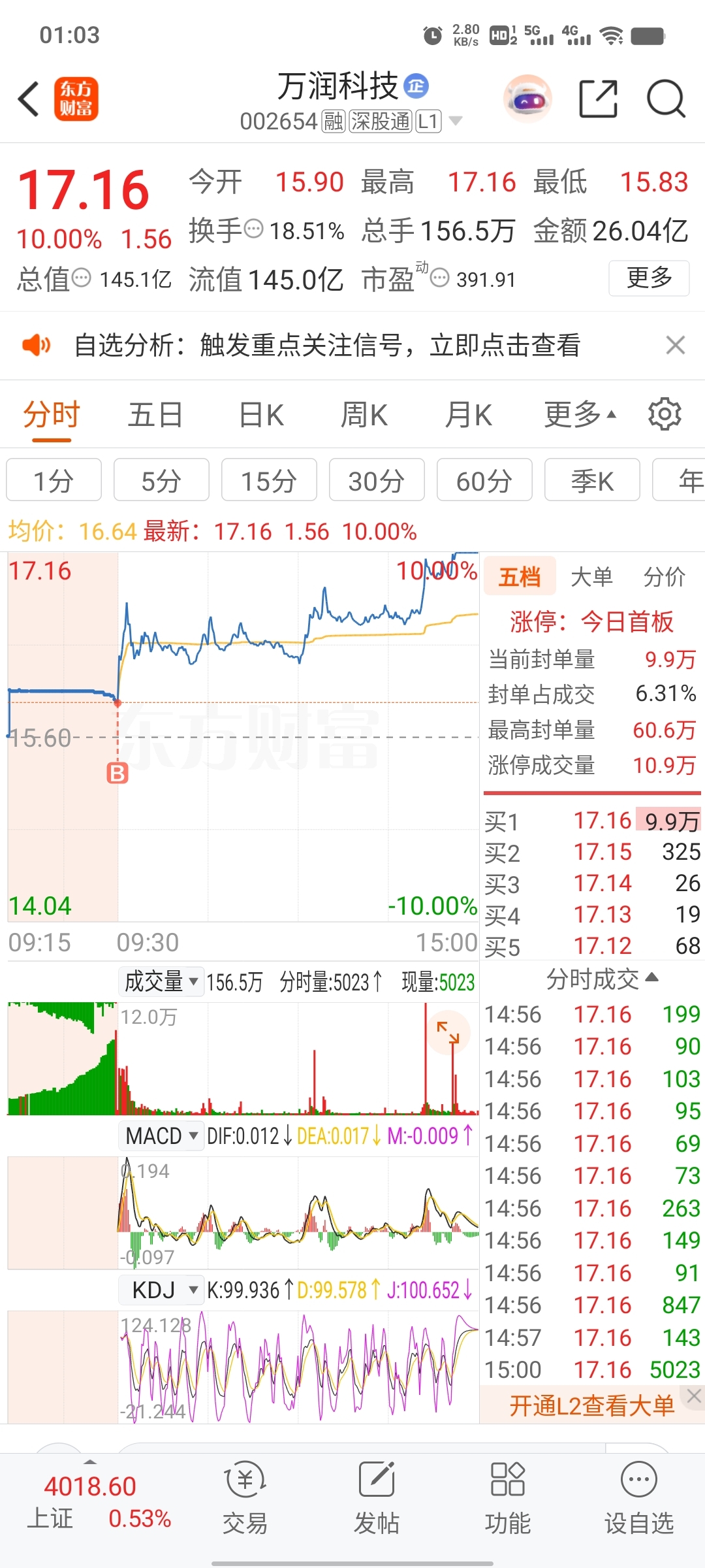 $万润科技(SZ002654)$ 觉得刚出道的我还行吧