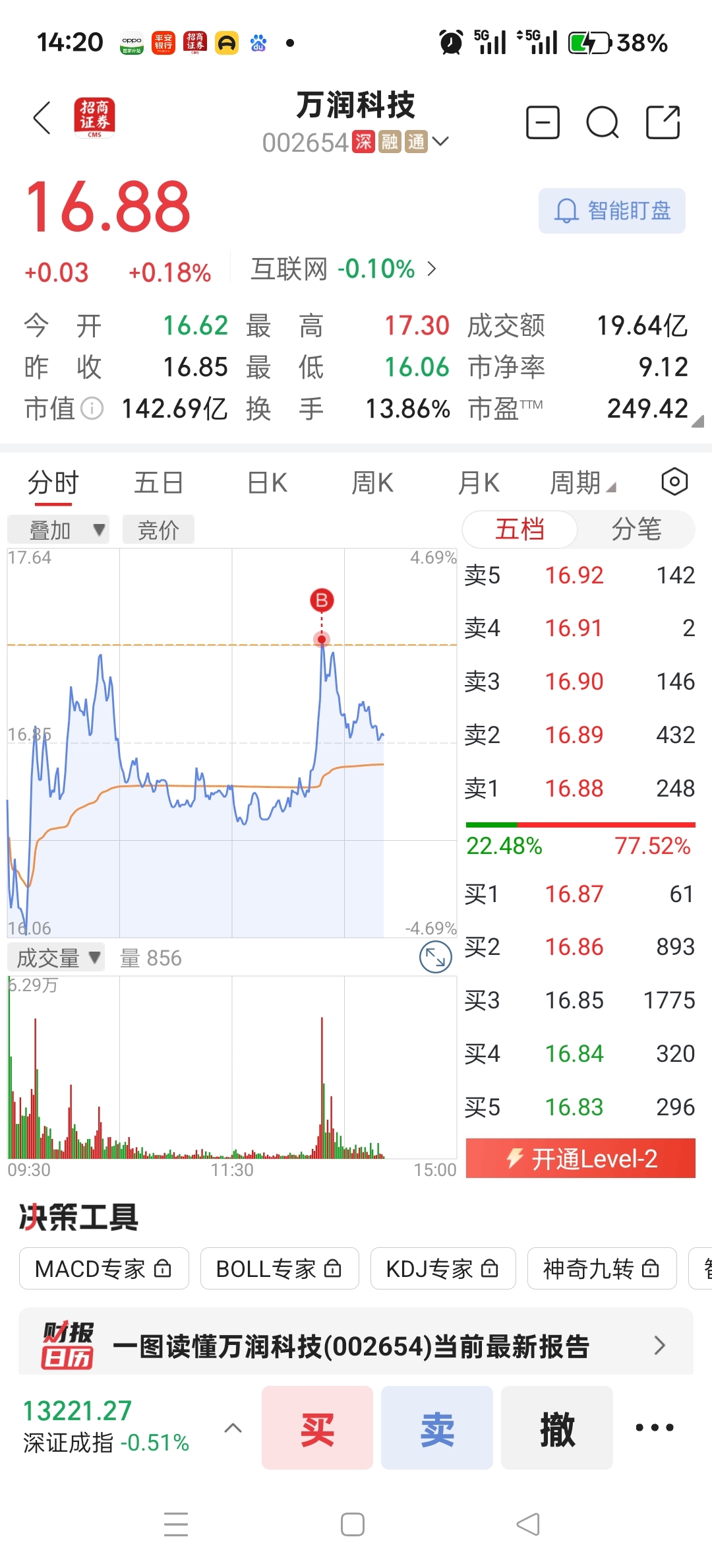 $万润科技(SZ002654)$ 今天山顶买的 不知明天如何