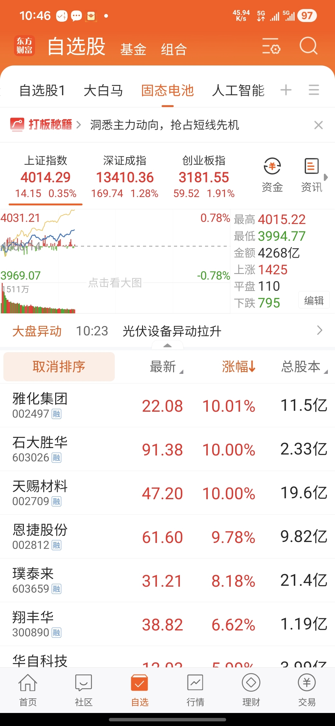 电池板块不比储存板块涨得晚?今年可以说就他两个板块涨得最多,但是锂电池板块后劲有劲,半导体是包括芯片的都调整一个月了,锂电池是从。年初一直涨到现在还一直在大涨,卖的太早了,提前一个月都卖了