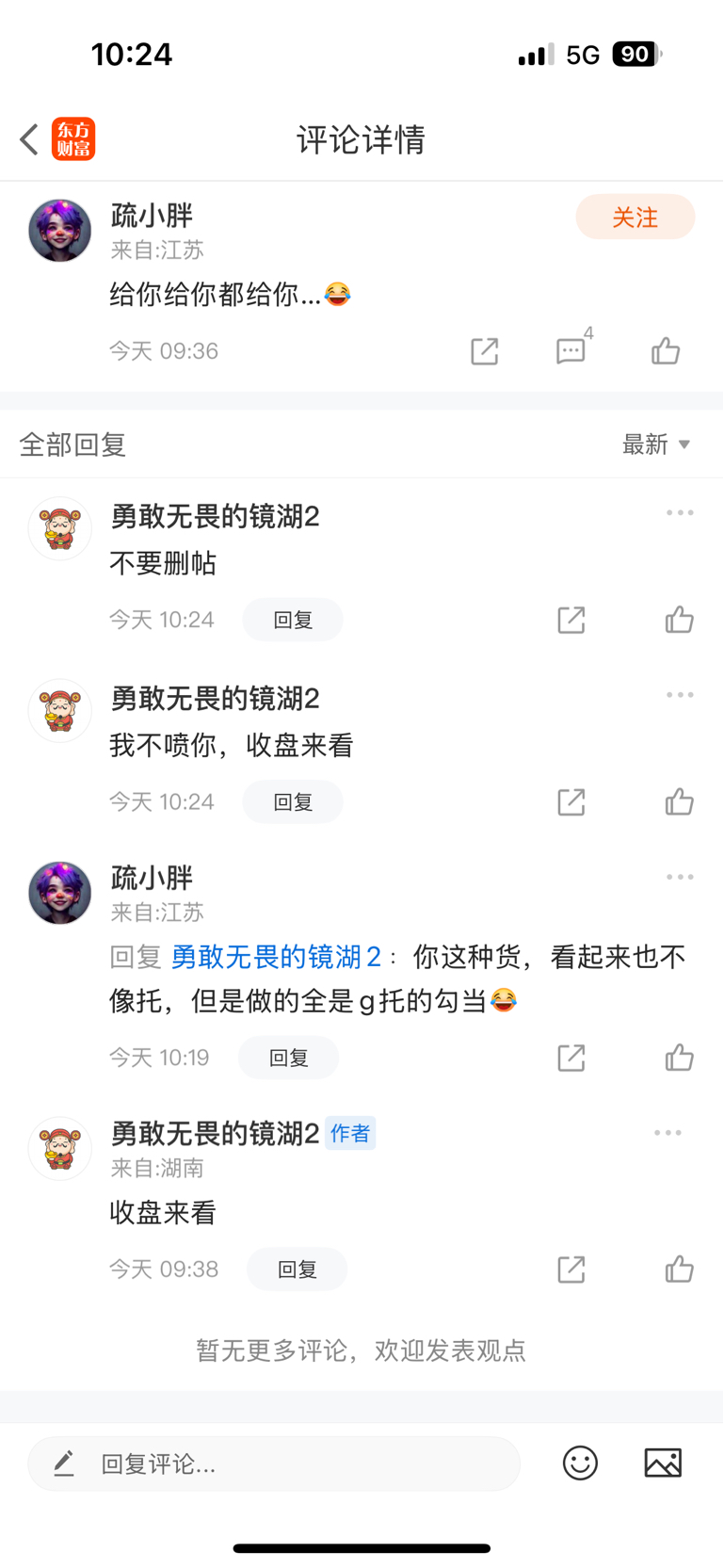 收盘拉起来了记得帮我喷这个人,我走了,恶臭的股吧