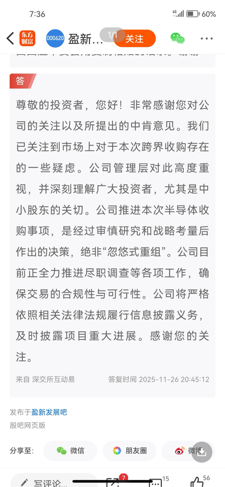 $万润科技(SZ002654)$ 看看盈新的董秘,多为中小股东考虑