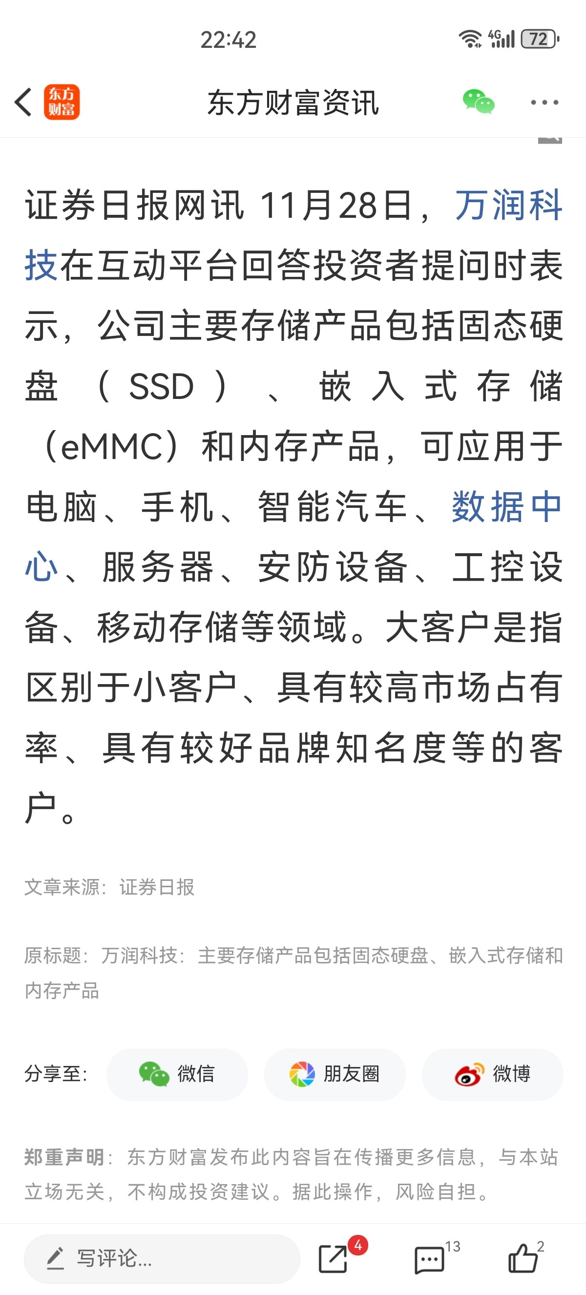 $万润科技(SZ002654)$ 万润科技做的是“国产方案、行业定制”,大客户就是信创、车载、安防三大招标池里的“国资甲方”,政策在、订单就在,技术门槛不高但门槛是“资质+颗粒”,跟紧长江存储、长鑫就能衣食无忧!万润科技未来可期!