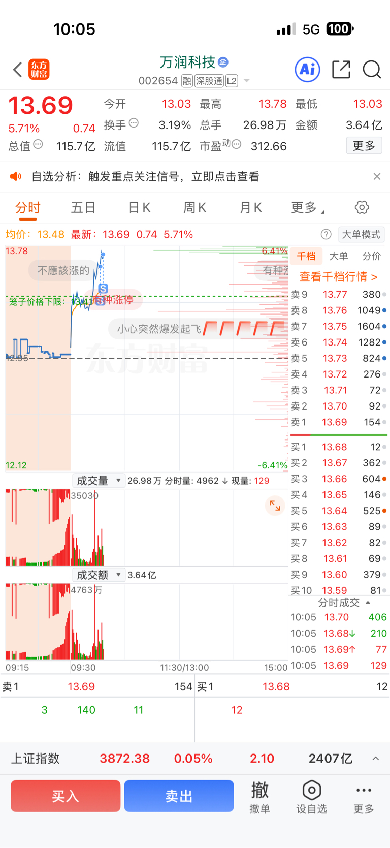 $万润科技(SZ002654)$ 我走完了可以涨停了