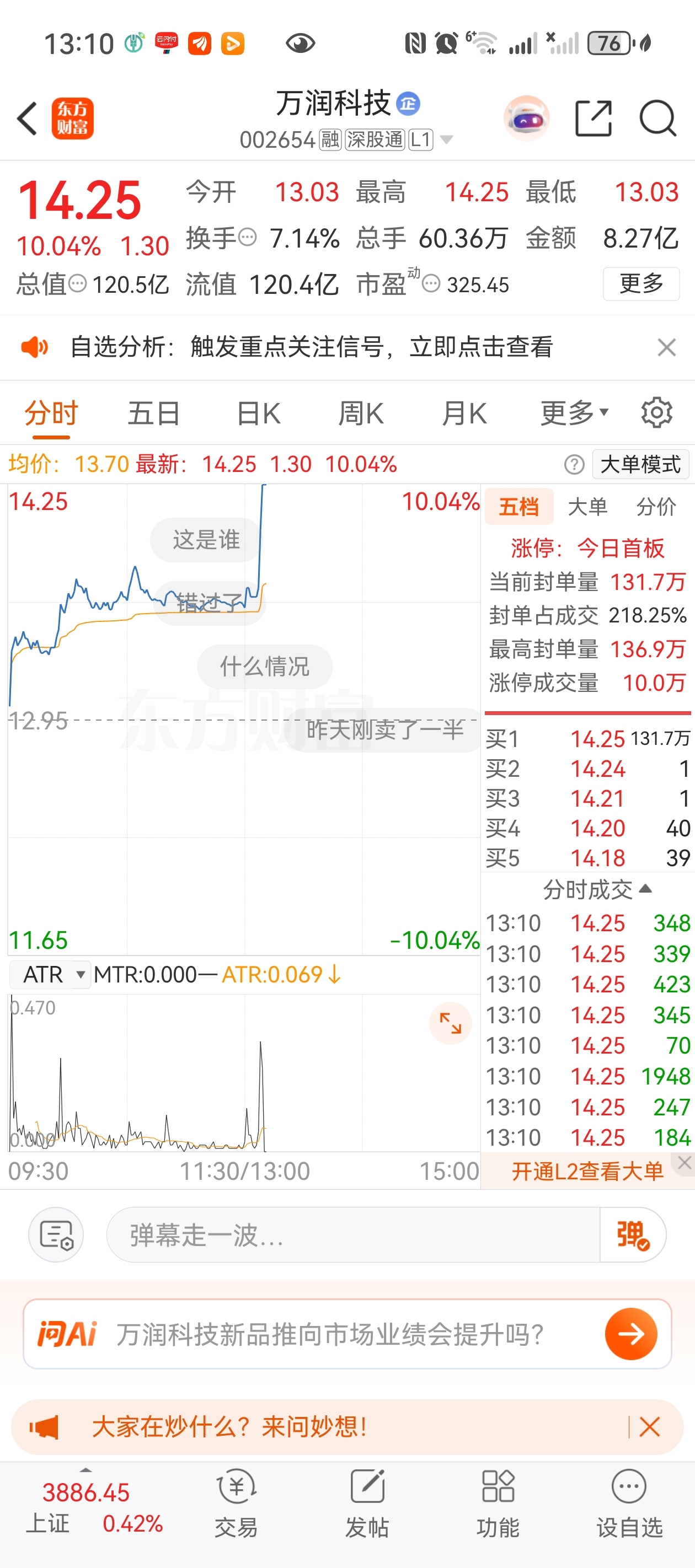 $万润科技(SZ002654)$ 把我激动的,拿了那么久终于涨停了,结果又炸板,还是没舍得出,希望不要辜负我的坚持呀