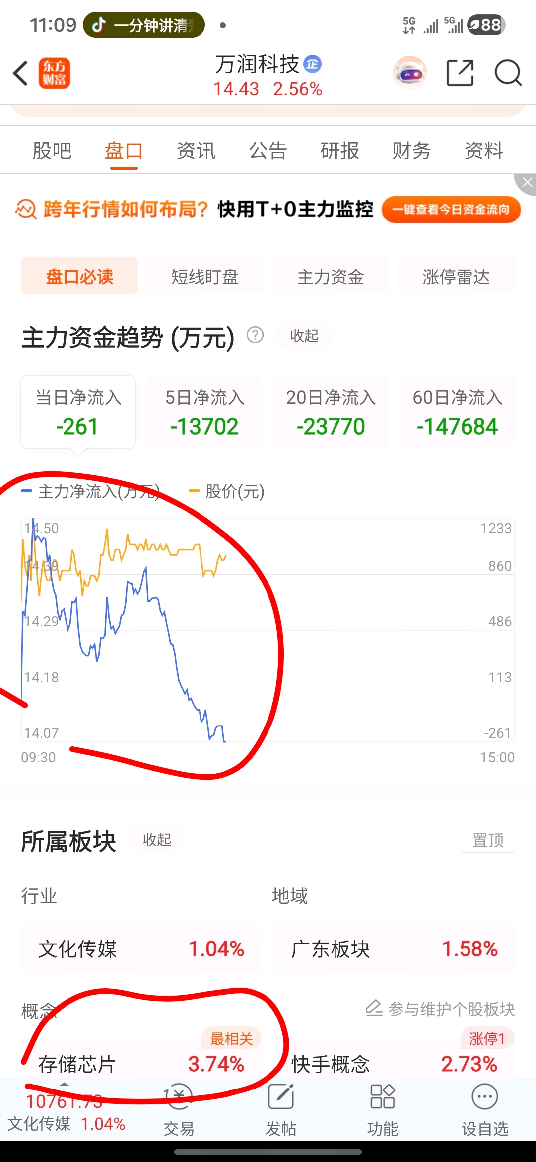 $万润科技(SZ002654)$ 江伯龙这次抄低点赚大发了,这个股主力要是流入,当天涨跌都可以不卖,今天储存板块快涨4个点了,也算暴涨了,这主力都能吓得连滚带爬,明天储存板块要是微调一个点,我希望万润跌三个点