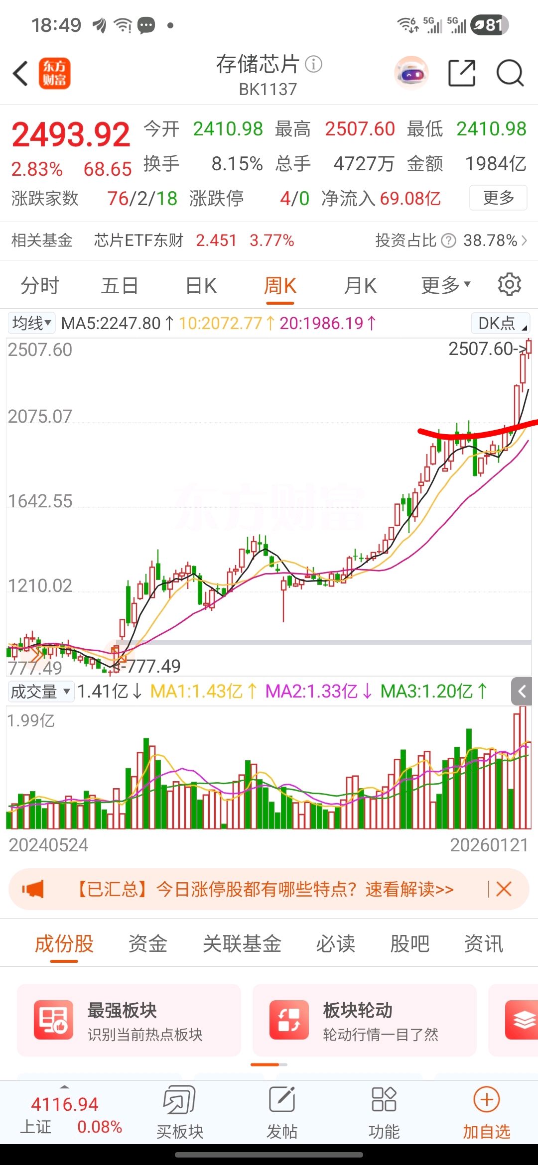 储存芯片板块创新高又涨这么多,我想第2次回调,应该快到了,涨一段回调一点再涨,大