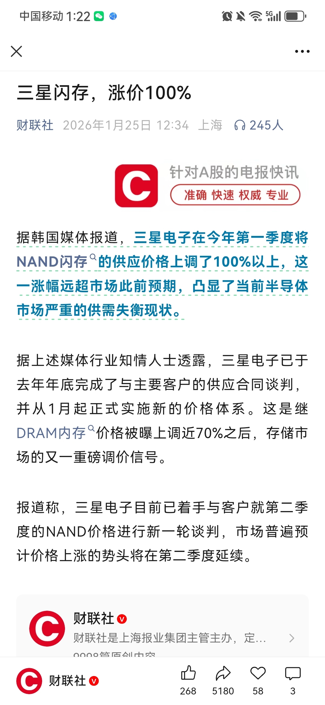 这现在不就轮到NAND了,加油!主要原因还是因为便宜,哪有这么便宜的存储?就是办公软件用的钉钉后台存储想要更大的都得加钱。方向没有错,我一定坚守住,无论涨跌。