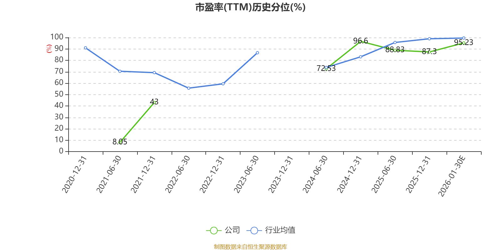 市盈率、市净率为负时,不显示当期分位数,会导致折线图中断。