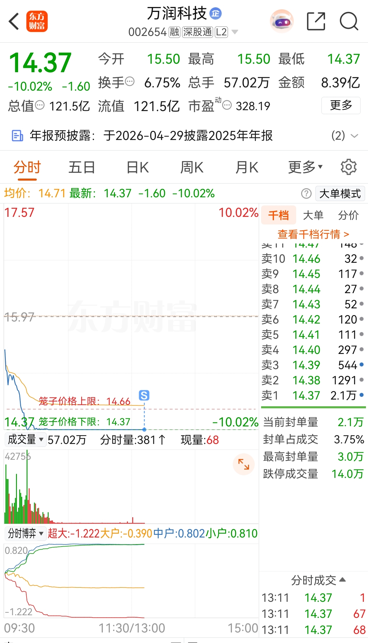 $万润科技(SZ002654)$ 排到了,不容易啊