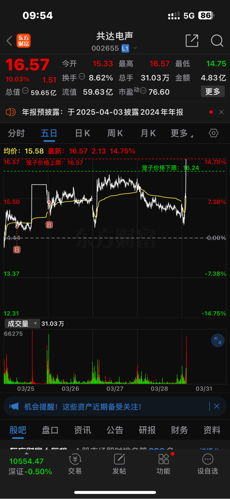 $共达电声(SZ002655)$ 等的就是你老铁 说了要碰17块 暴力洗盘不存在的#炒股日记# #实盘记录#