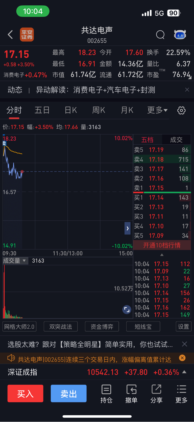 $共达电声(SZ002655)$ 昨天这股在召唤我,没追上,就排队了!模式内的票,这股热点没发酵起来,要不然至少三板。被高标润都股份、合锻智造抢走了关注度。当然也可能是股性、量化的原因。