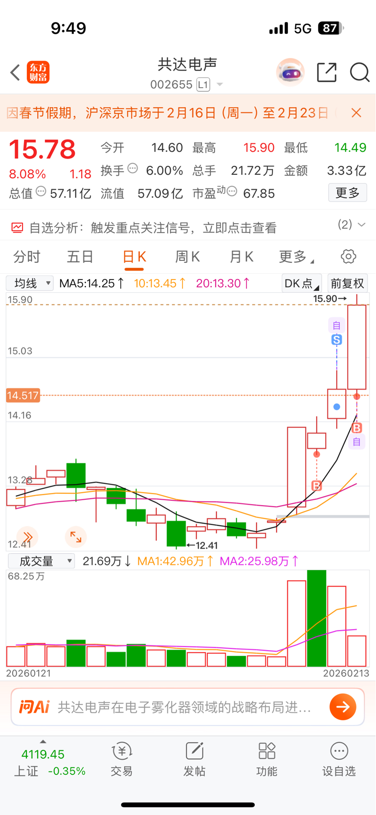 温馨提示: 1.根据《证券法》规定,禁止编造、传播虚假信息或者误导性信息,扰乱证券市场;2.用户在本社区发表的所有资料、言论等仅代表个人观点,与本网站立场无关,不对您构成任何投资建议。用户应基于自己的独立判断,自行决定证券投资并承担相应风险。《东方财富社区管理规定》