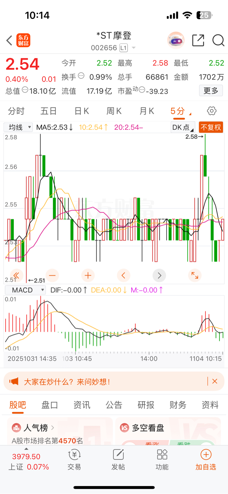 $*ST摩登(SZ002656)$ 连续两天摸一下2.58然后快速回撤