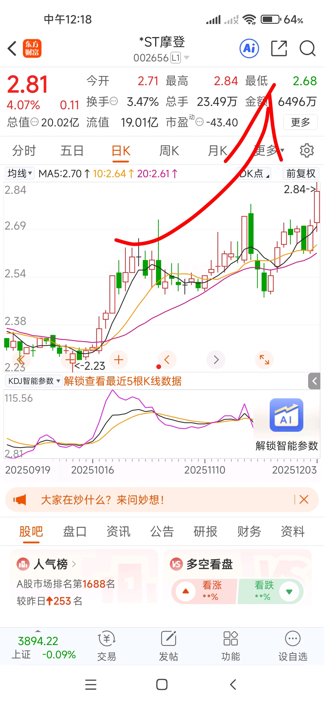摩登2656突破2.7的阻力位了,洗盘成功,向上方拉升。