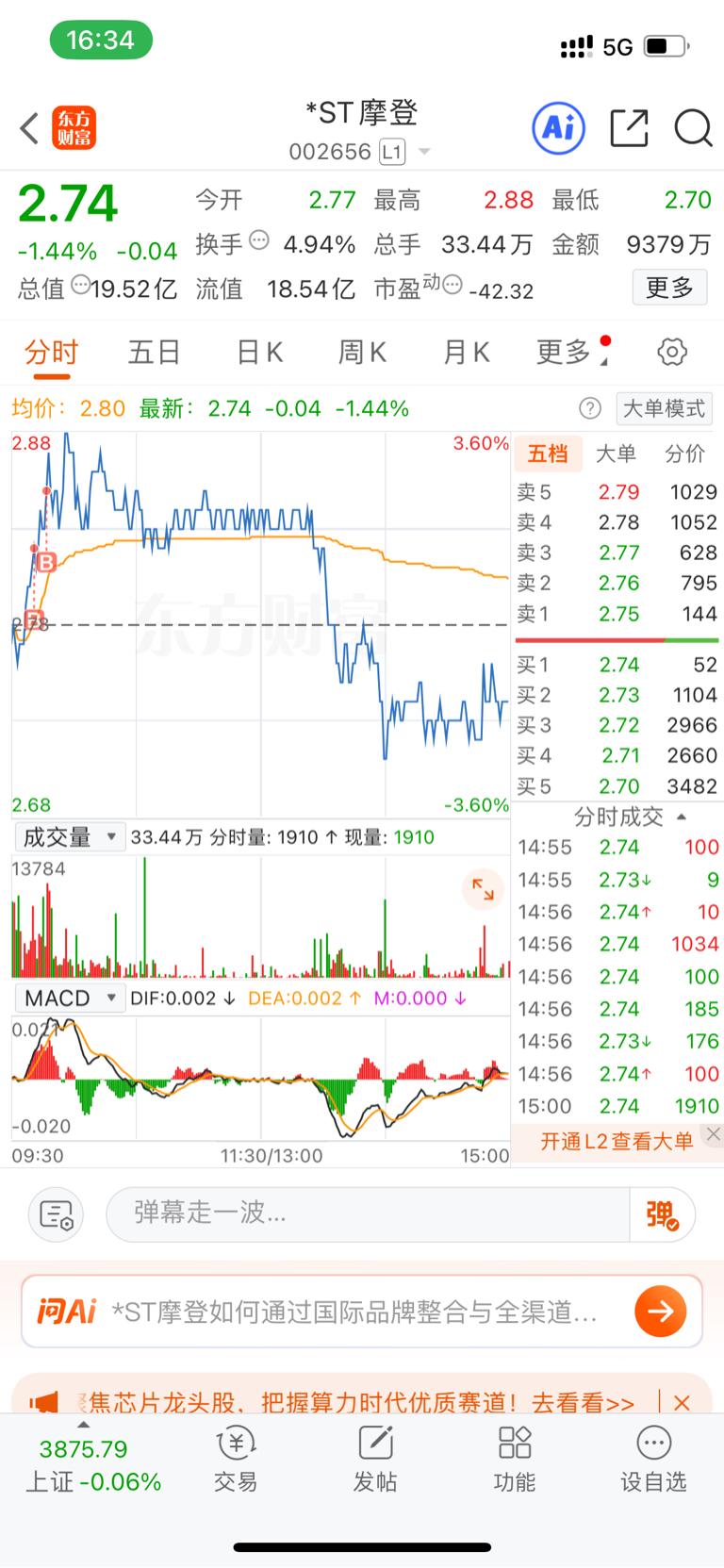 $*ST摩登(SZ002656)$ 侥幸出了东皇,又跳入你这个坑,明天给我拉涨停