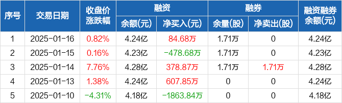 中科金财:融资净买入84.68万元,融资余额4.24亿元(01-16)