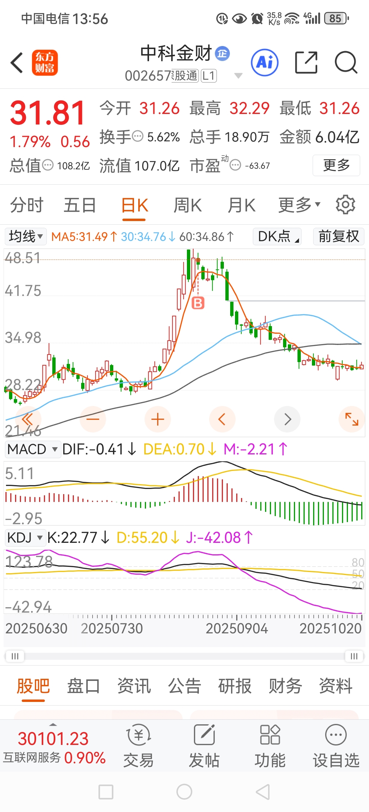 $中科金财(SZ002657)$ 一直没看到真正起来的迹象,继续拿吧,俩月了半死不活的