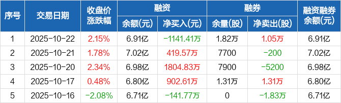 中科金财:融资净偿还1141.41万元,融资余额6.91亿元(10-22)