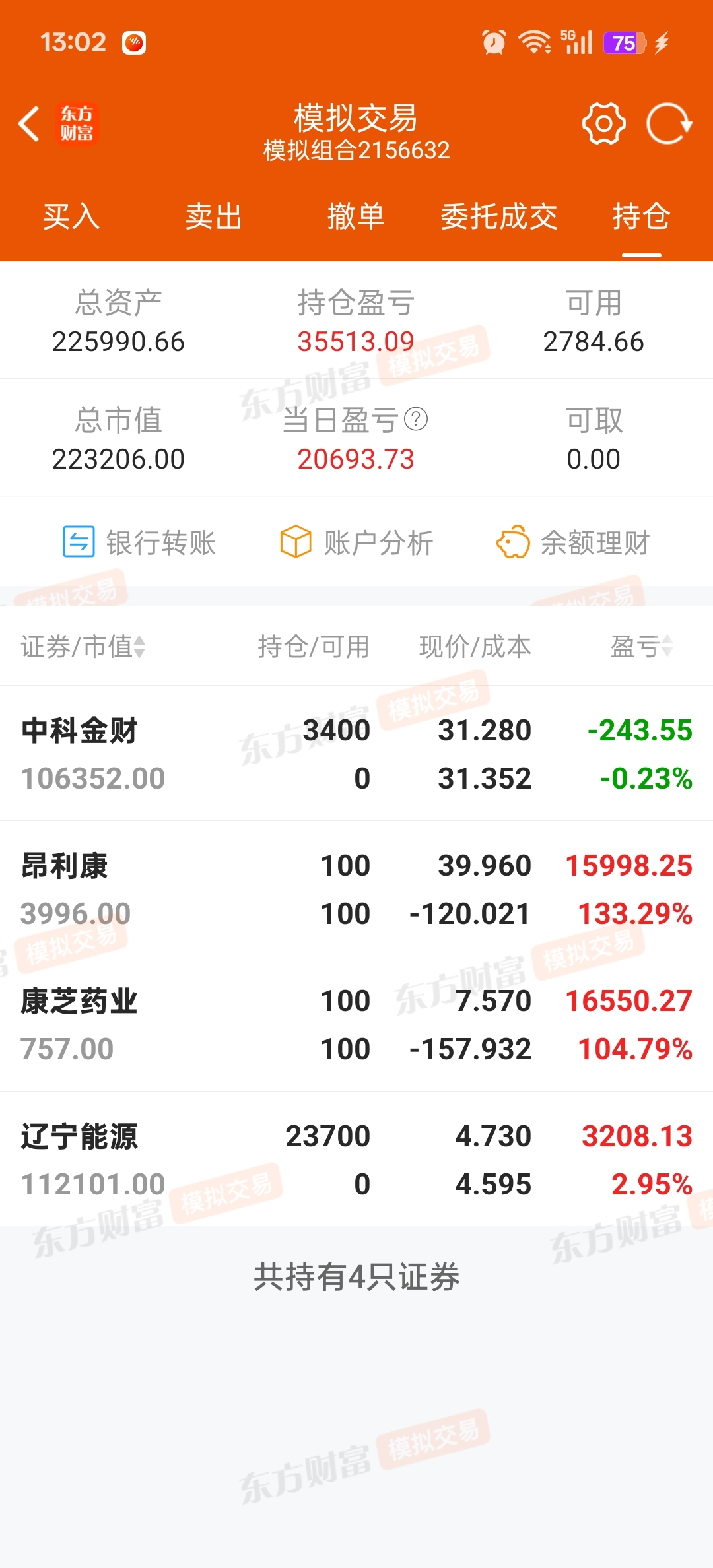 $中科金财(SZ002657)$ 这个月模拟账户赚6万了,实盘账户还亏了点。模拟账户买票没有压力,看上了就买。