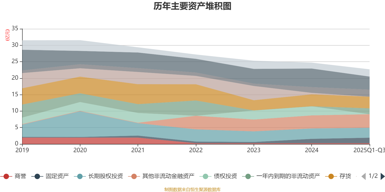 资产重大变化方面,截至2025年三季度末,公司债权投资较上年末减少100%,占公司总资产比重下降11.22个百分点;一年内到期的非流动资产占公司总资产的7.86%,上年末为0;货币资金较上年末减少29.93%,占公司总资产比重下降5.38个百分点;应收票据及应收账款较上年末增加23.77%,占公司总资产比重上升2.48个百分点。