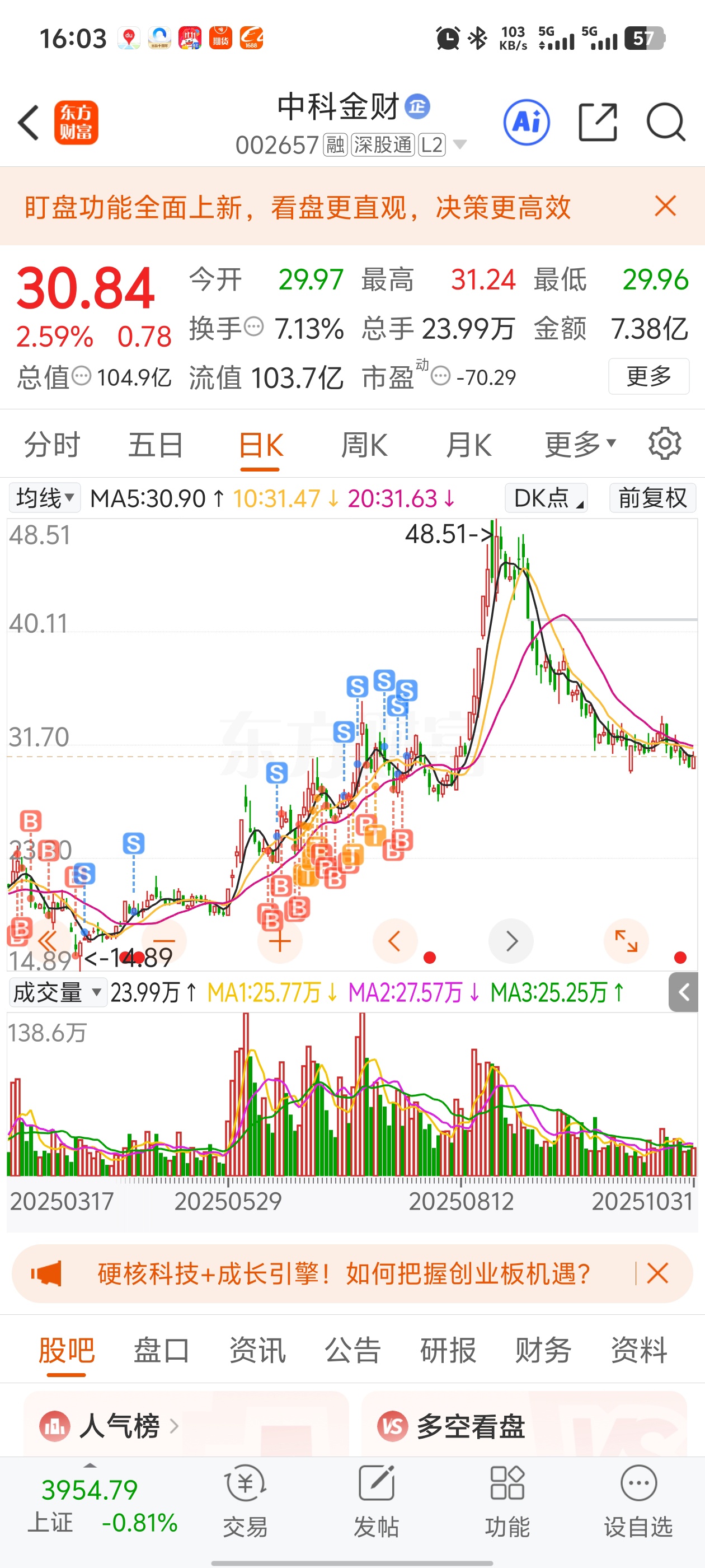 $中科金财(SZ002657)$ 又回到了我当初清仓的位置了