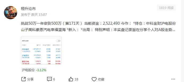 温馨提示: 1.根据《证券法》规定,禁止编造、传播虚假信息或者误导性信息,扰乱证券市场;2.用户在本社区发表的所有资料、言论等仅代表个人观点,与本网站立场无关,不对您构成任何投资建议。用户应基于自己的独立判断,自行决定证券投资并承担相应风险。《东方财富社区管理规定》