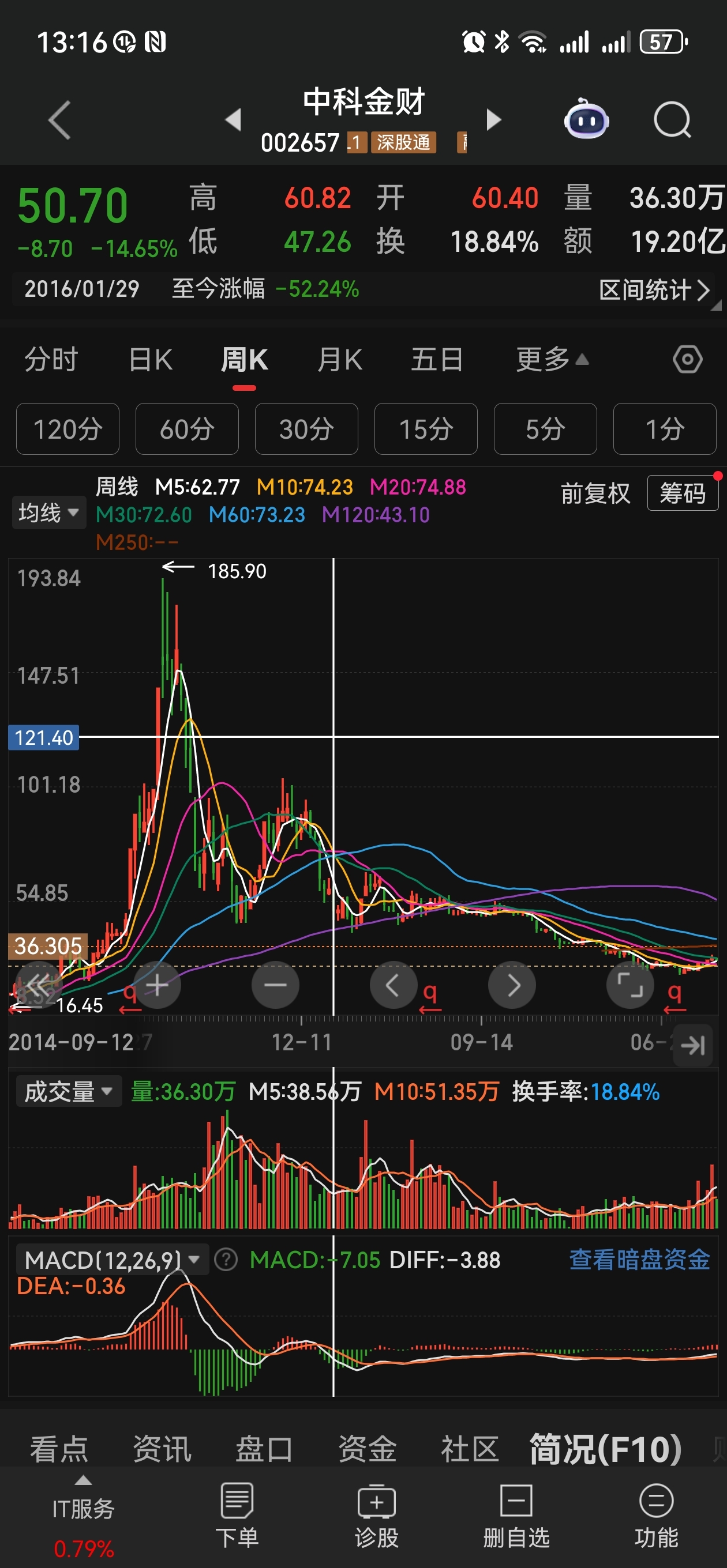 $中科金财(SZ002657)$ 周线macd真狠。参考那时候。