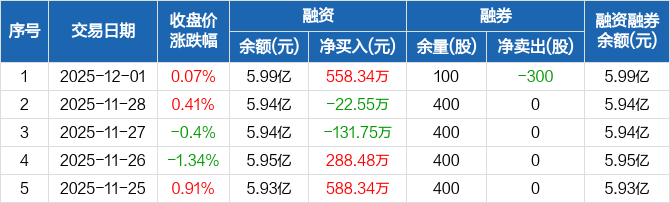中科金财:融资净买入558.34万元,融资余额5.99亿元(12-01)