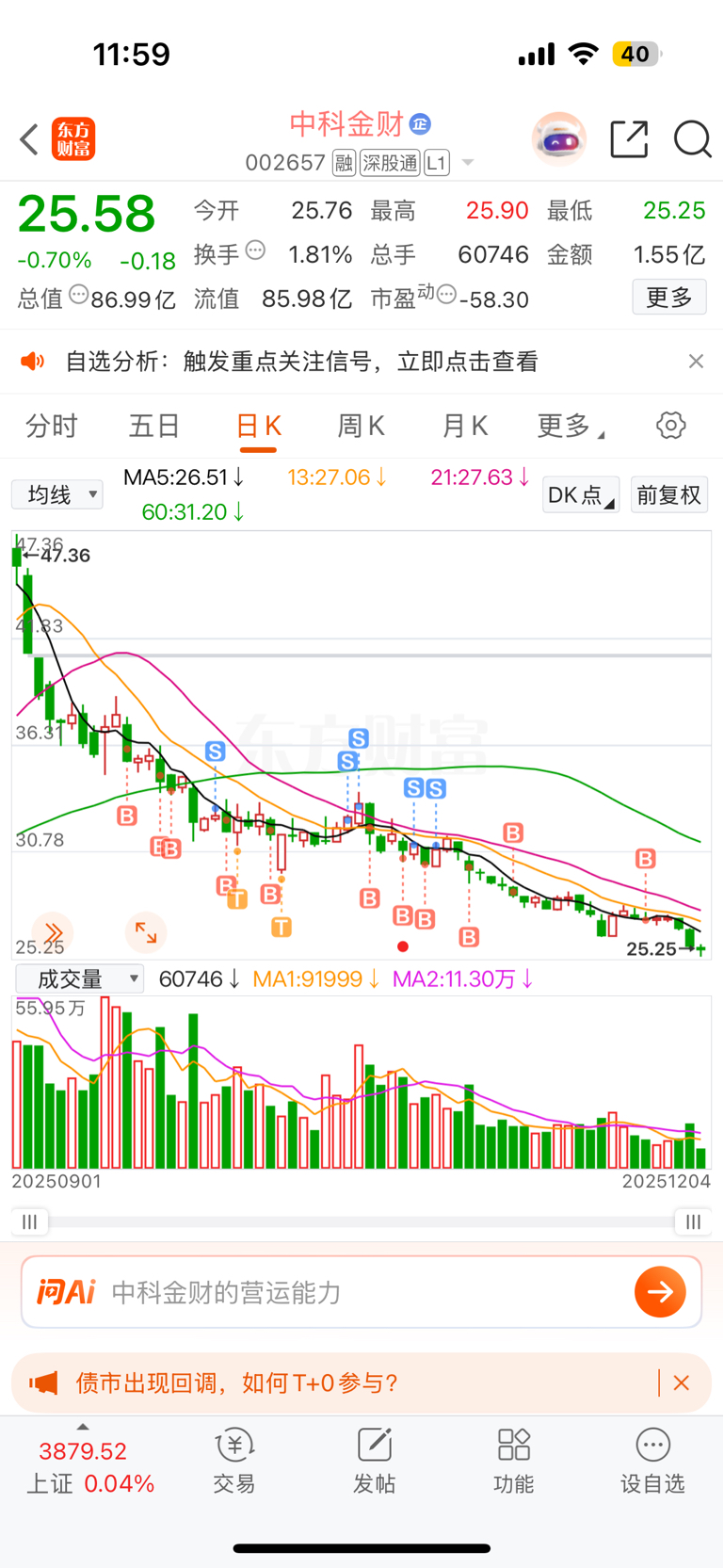 $中科金财(SZ002657)$ 还在死扛,前面还能T后面连T么做不了了