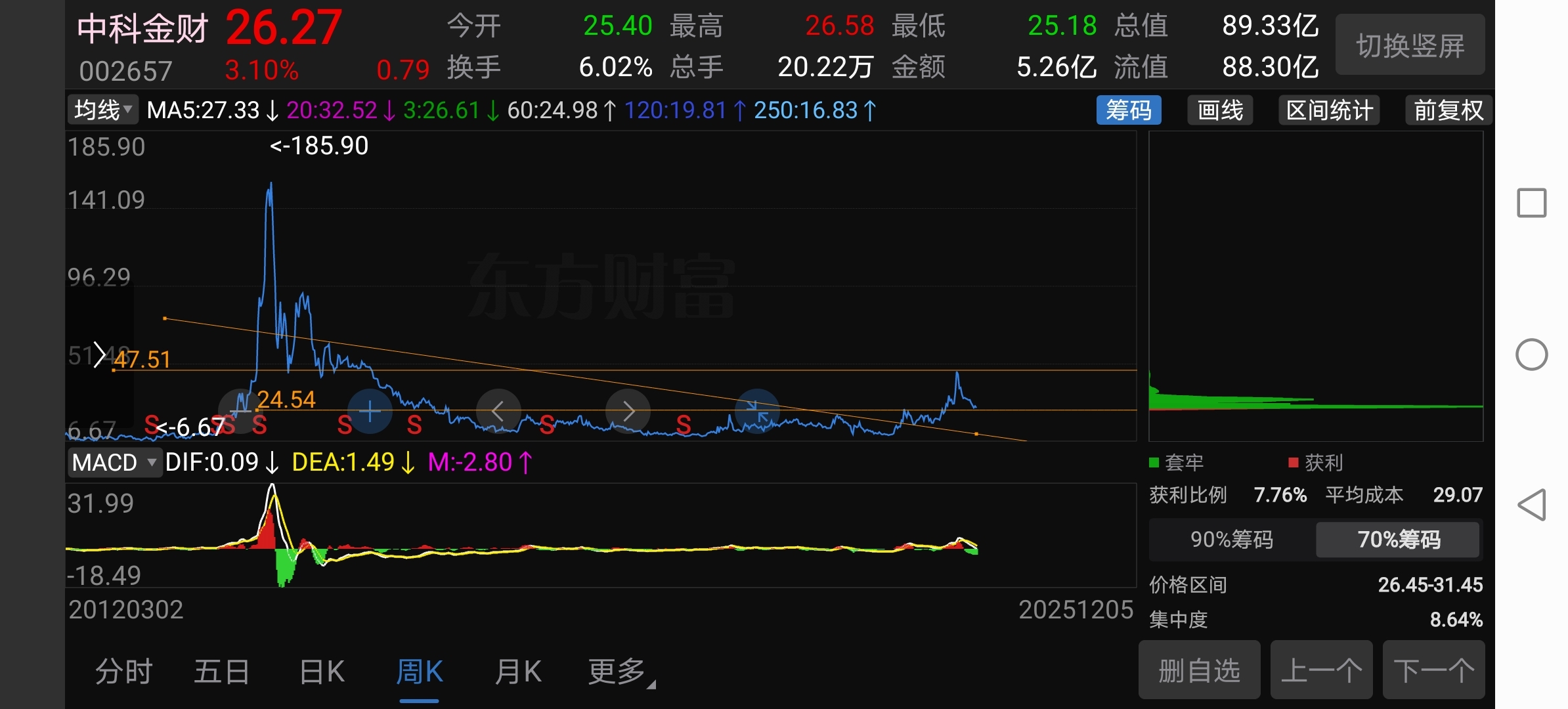 1206,周K级别三角形整理,目前处于箱体下沿买点。此票级别大周期长。