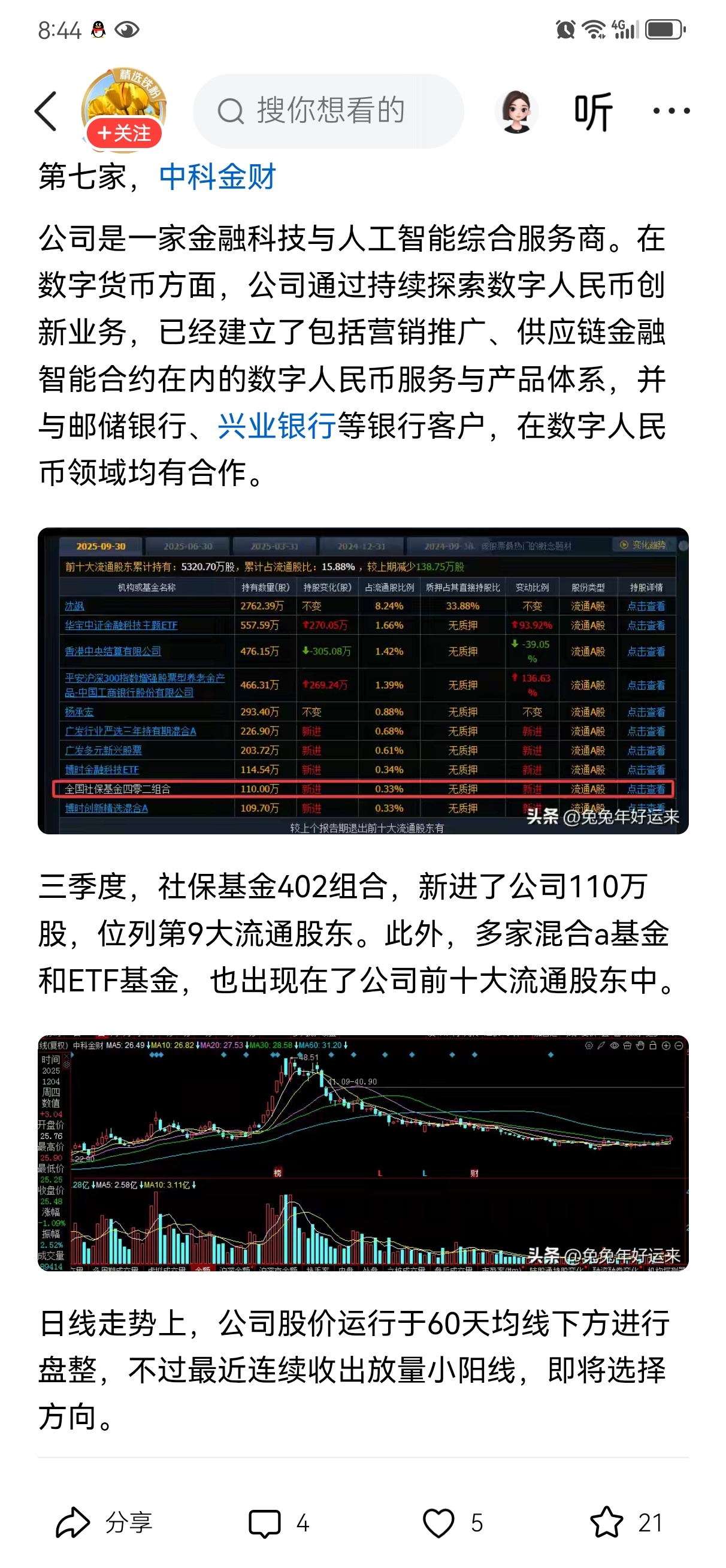 $中科金财(SZ002657)$