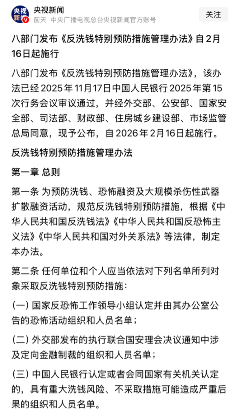 银行软件硬件、设备要升级了,2月16《反洗钱特别预防措施管理办法》开始实行,金融