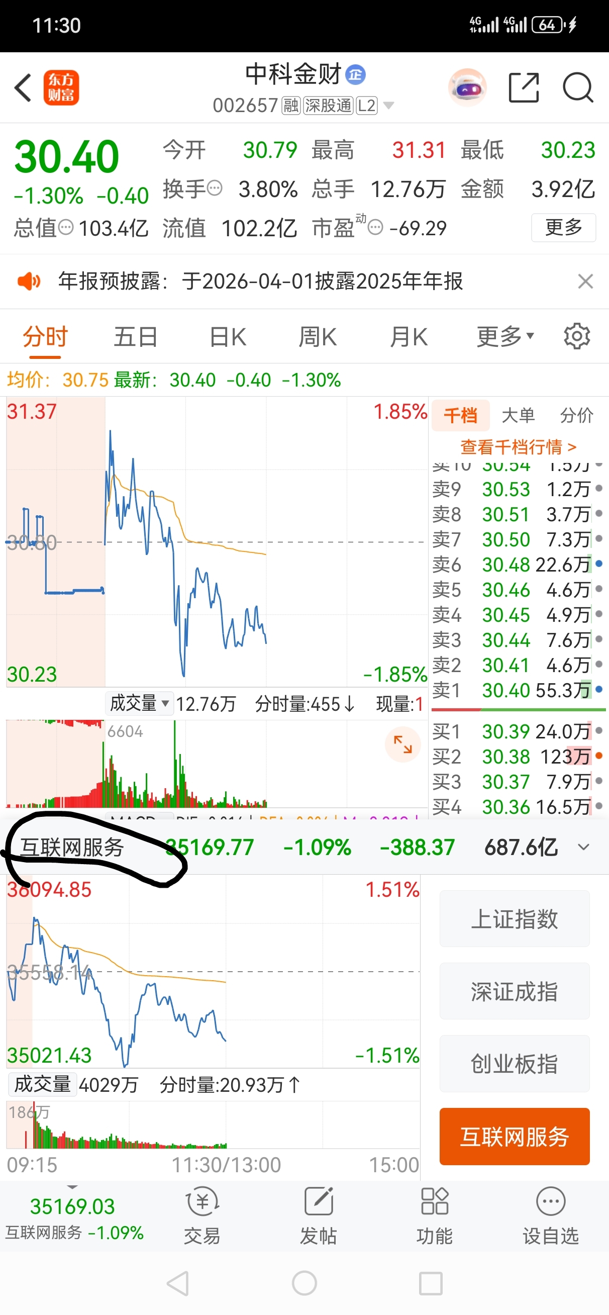 $中科金财(SZ002657)$ 板块不强,股也不强