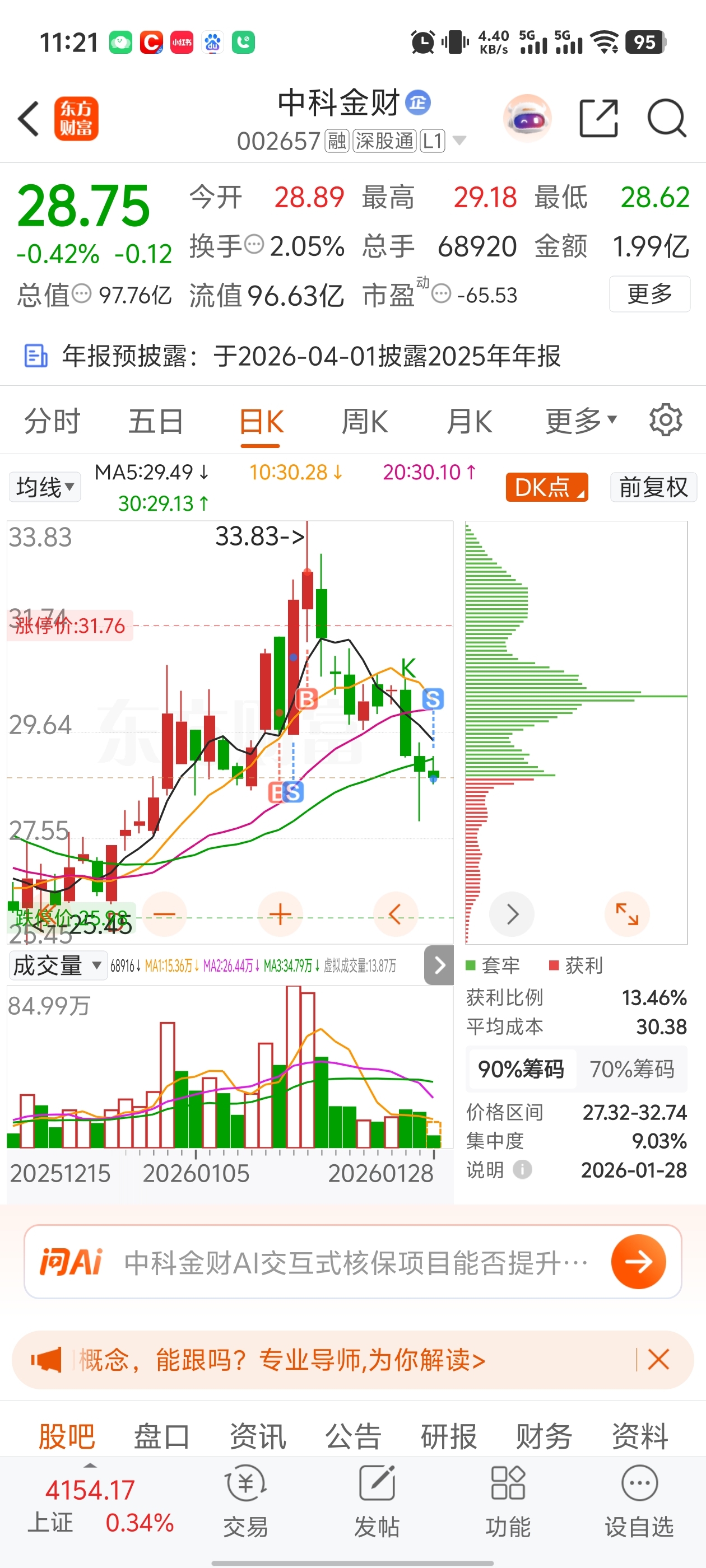 $中科金财(SZ002657)$ 学会割肉 才会起飞 祝兄弟们起飞 对不住了 兄弟我先撤了