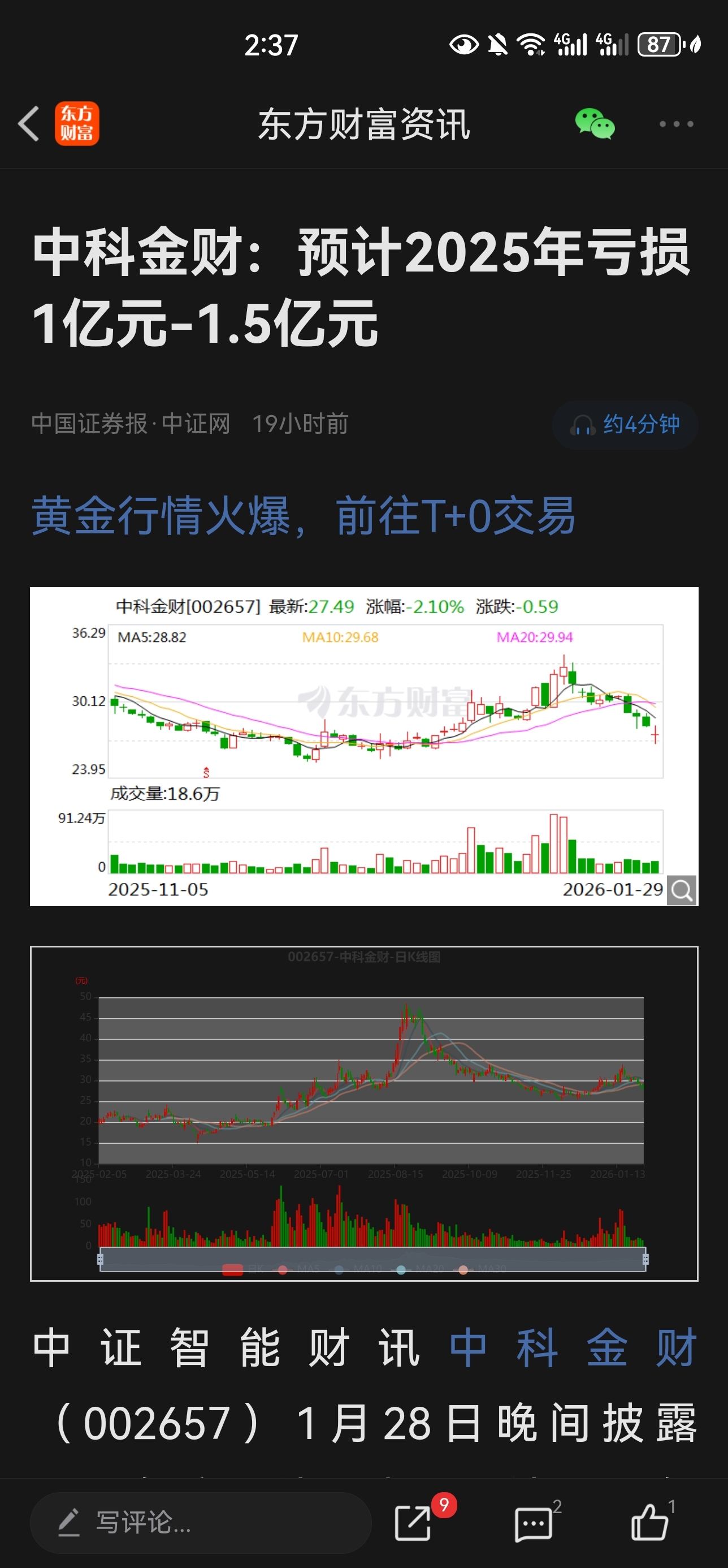 $中科金财(SZ002657)$
