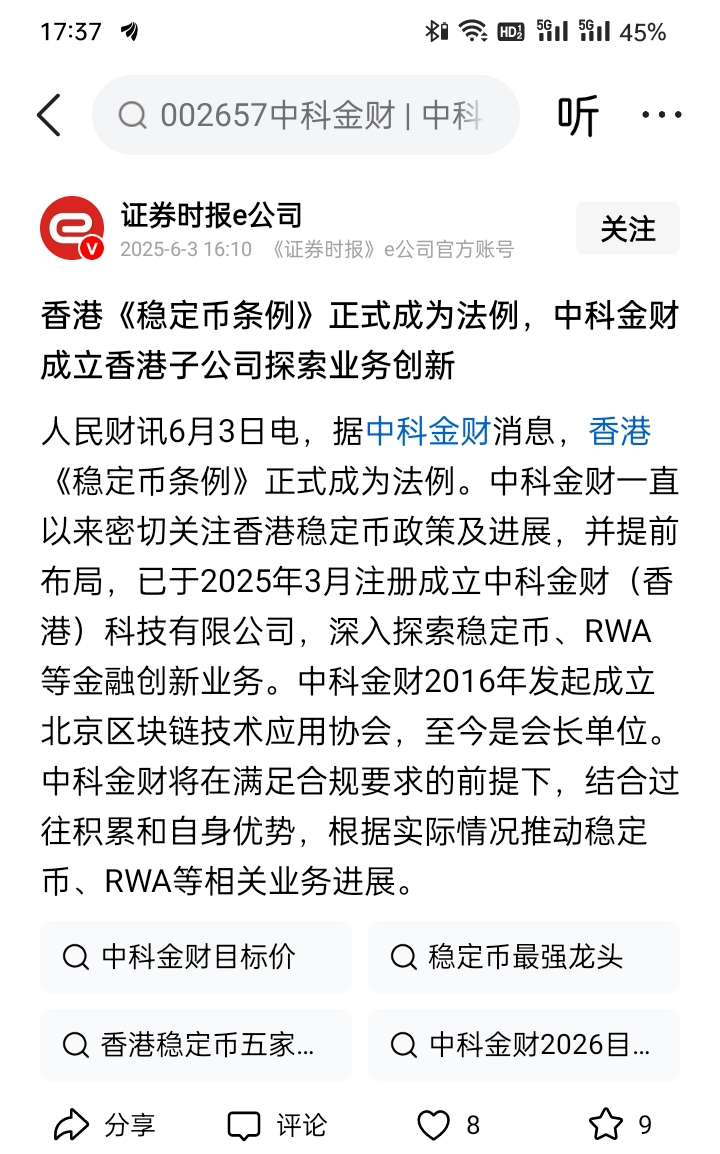 $中科金财(SZ002657)$