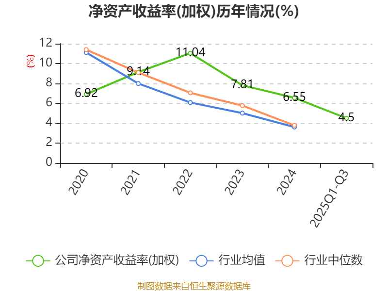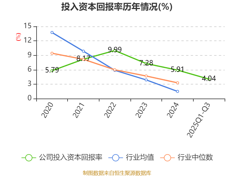 盈利能力方面, 2025年前三季度公司加权平均净资产收益率为4.5%,同比上升1.53个百分点。公司2025年前三季度投入资本回报率为4.04%,较上年同期上升1.54个百分点。