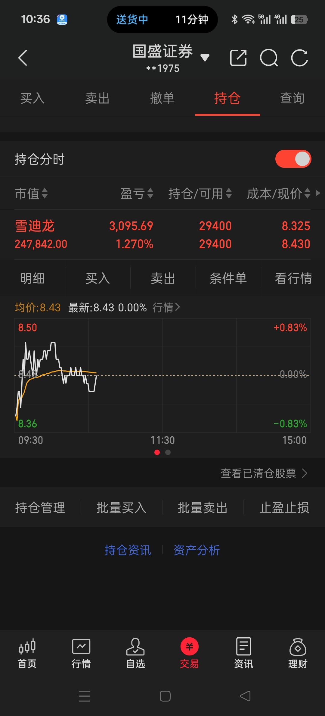 $雪迪龙(SZ002658)$ 我买了二十五万,森水你的本金有我盈利的三千块多吗?