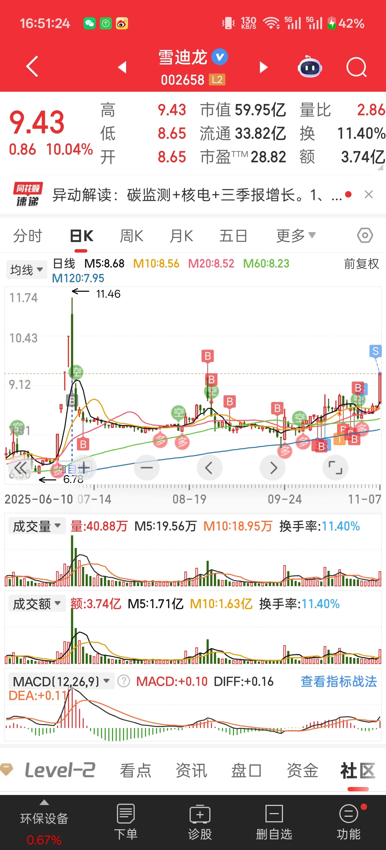 $雪迪龙(SZ002658)$ 两个月了,熬最久的了 ,中间两次盈利都没走又被套