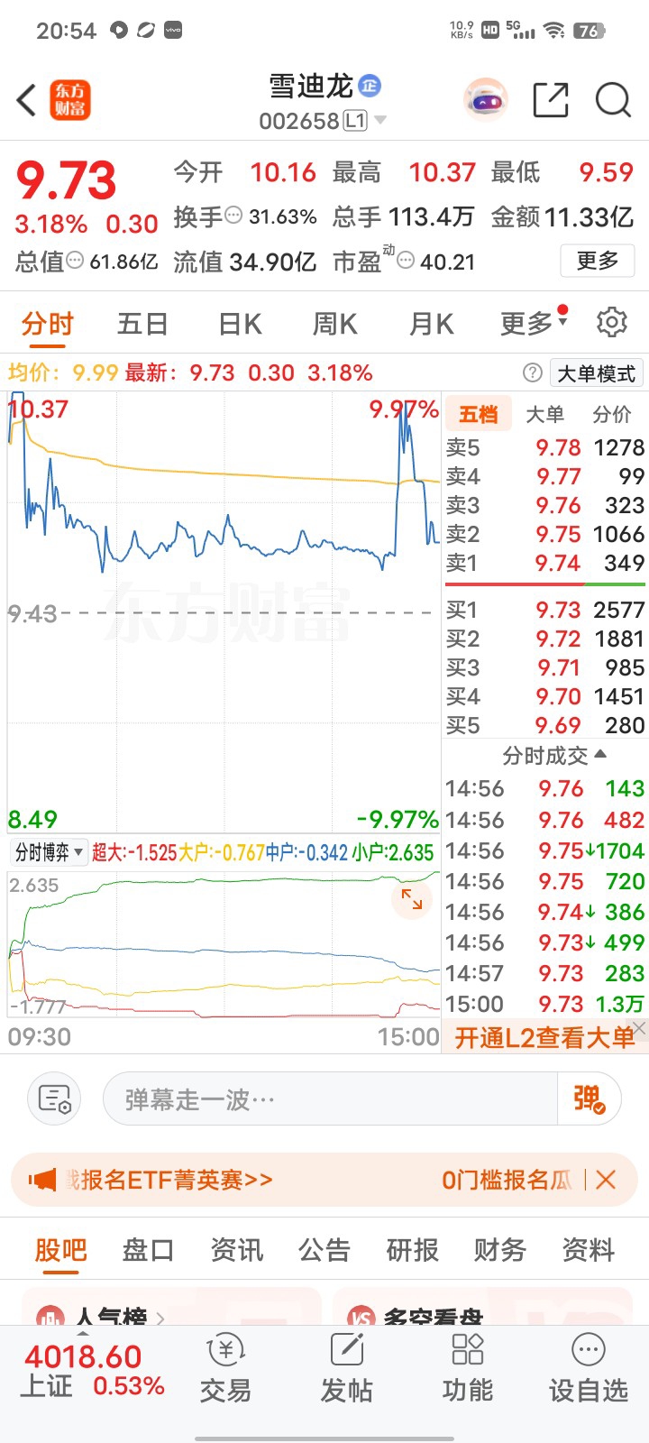 $雪迪龙(SZ002658)$