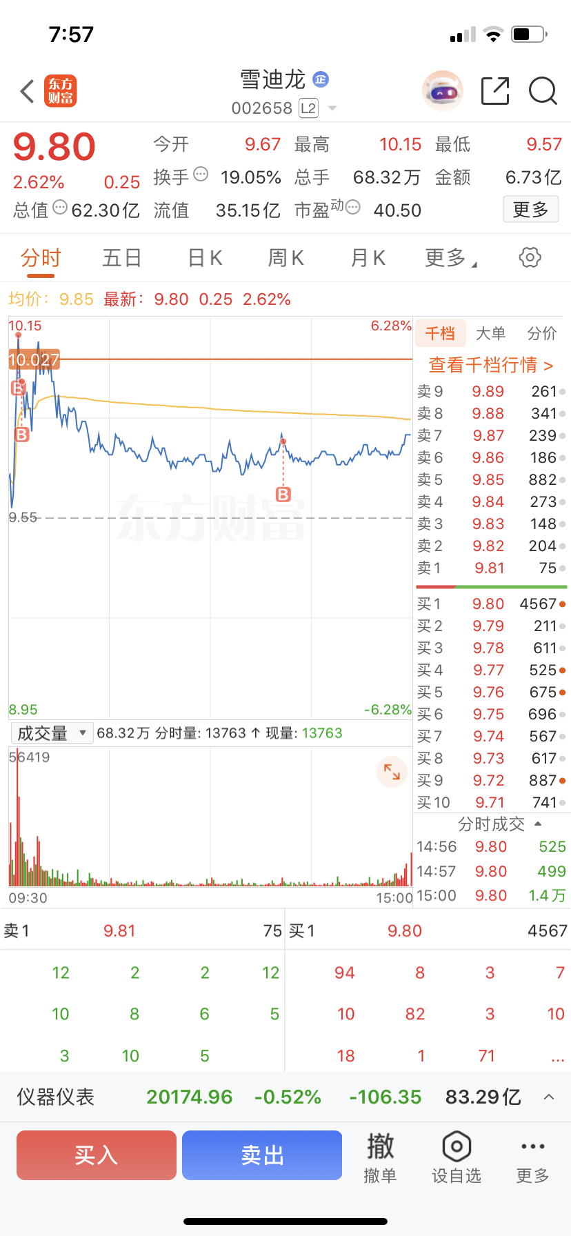 $雪迪龙(SZ002658)$ 各位英雄好汉,明天什么看法