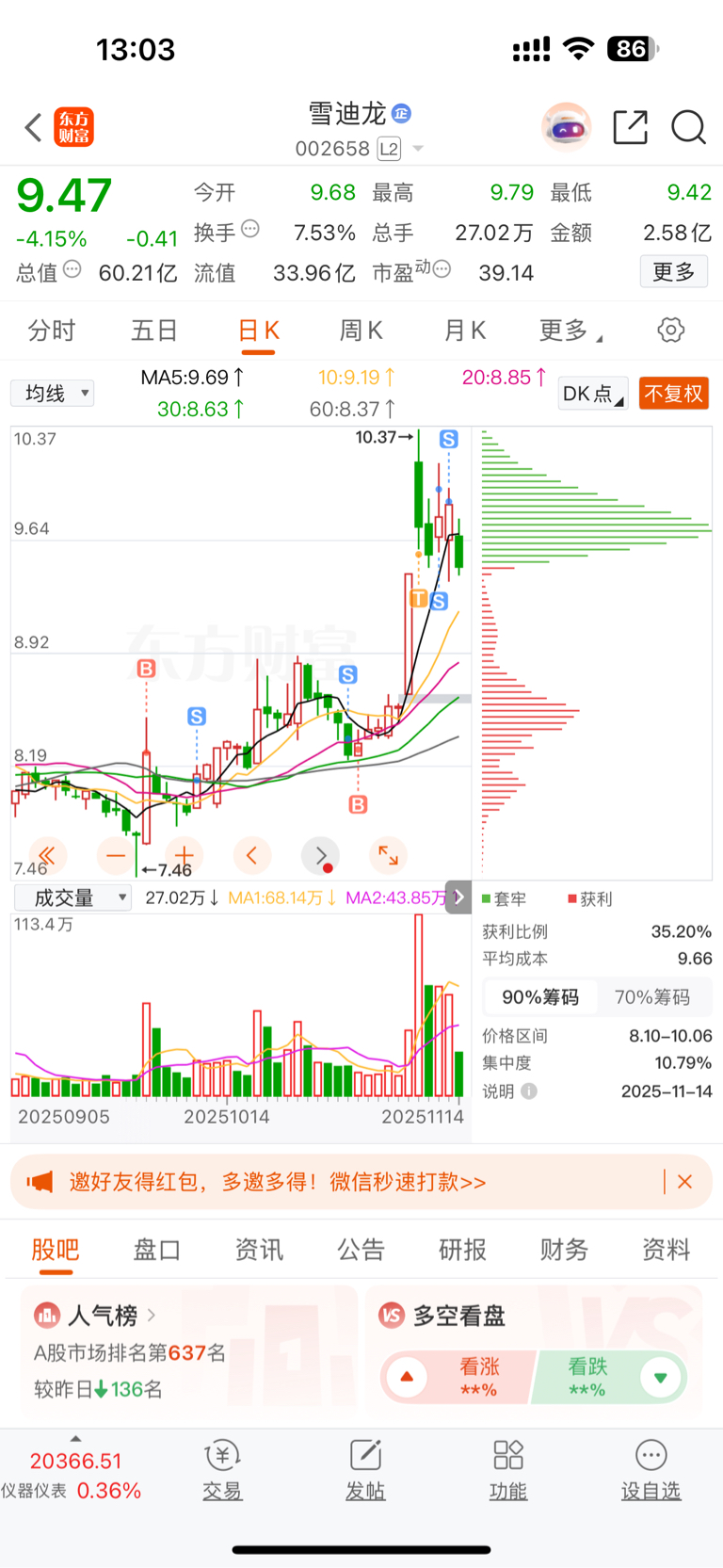 $雪迪龙(SZ002658)$ 昨天出完了