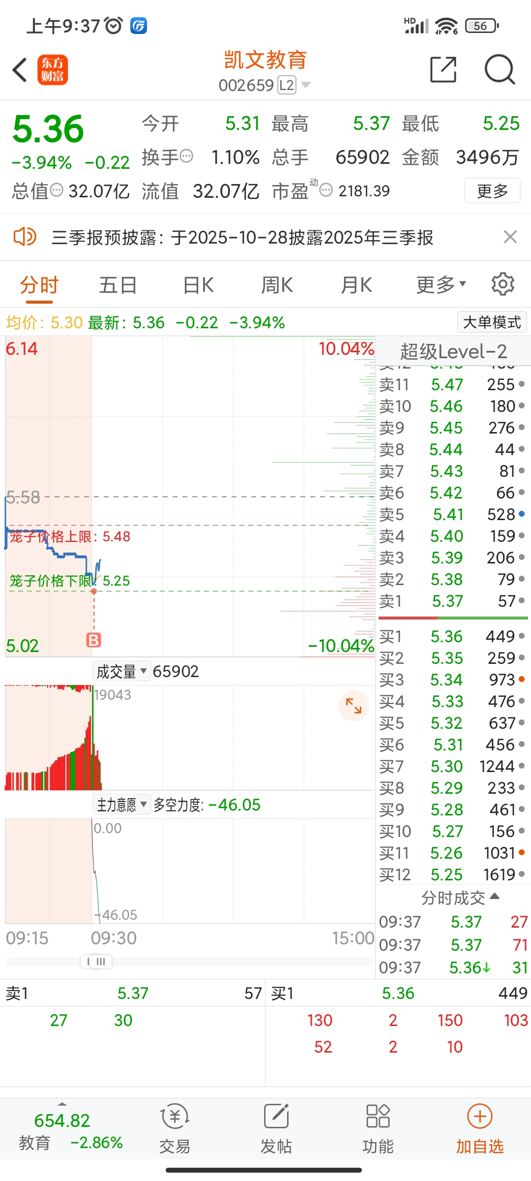 $凯文教育(SZ002659)$ 我考,5.25买了2万股,谁卖我
