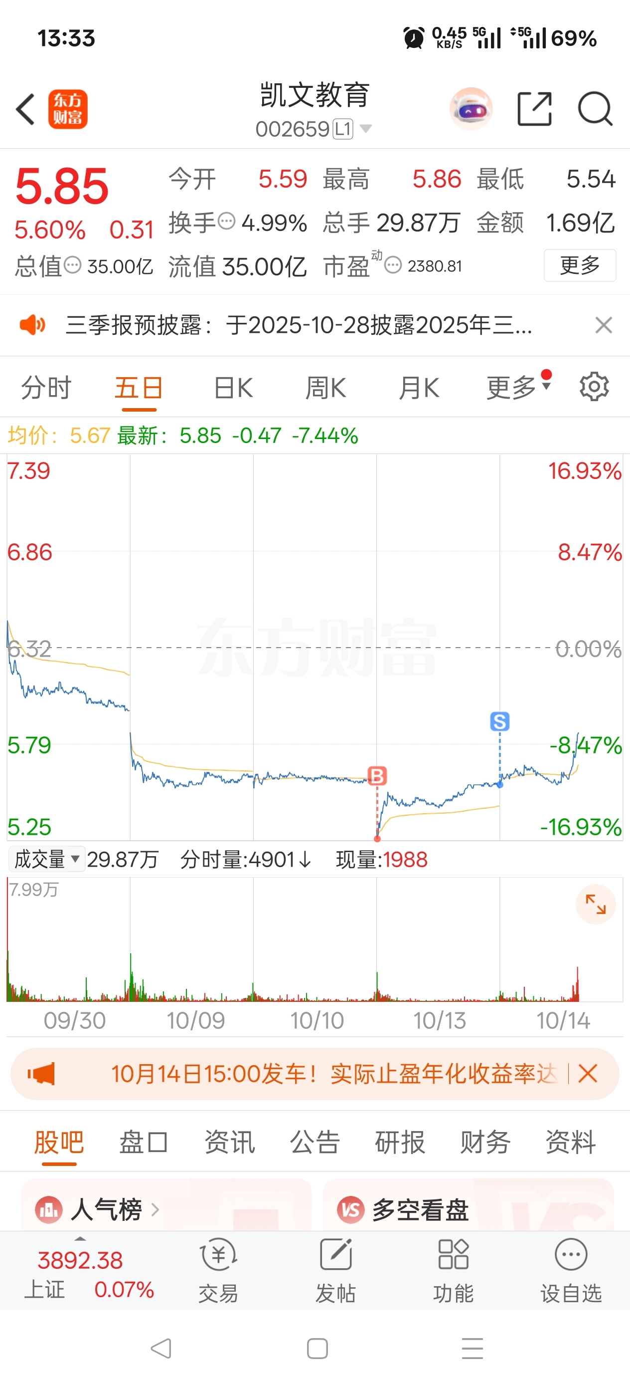$凯文教育(SZ002659)$ 吃了一点点肉。