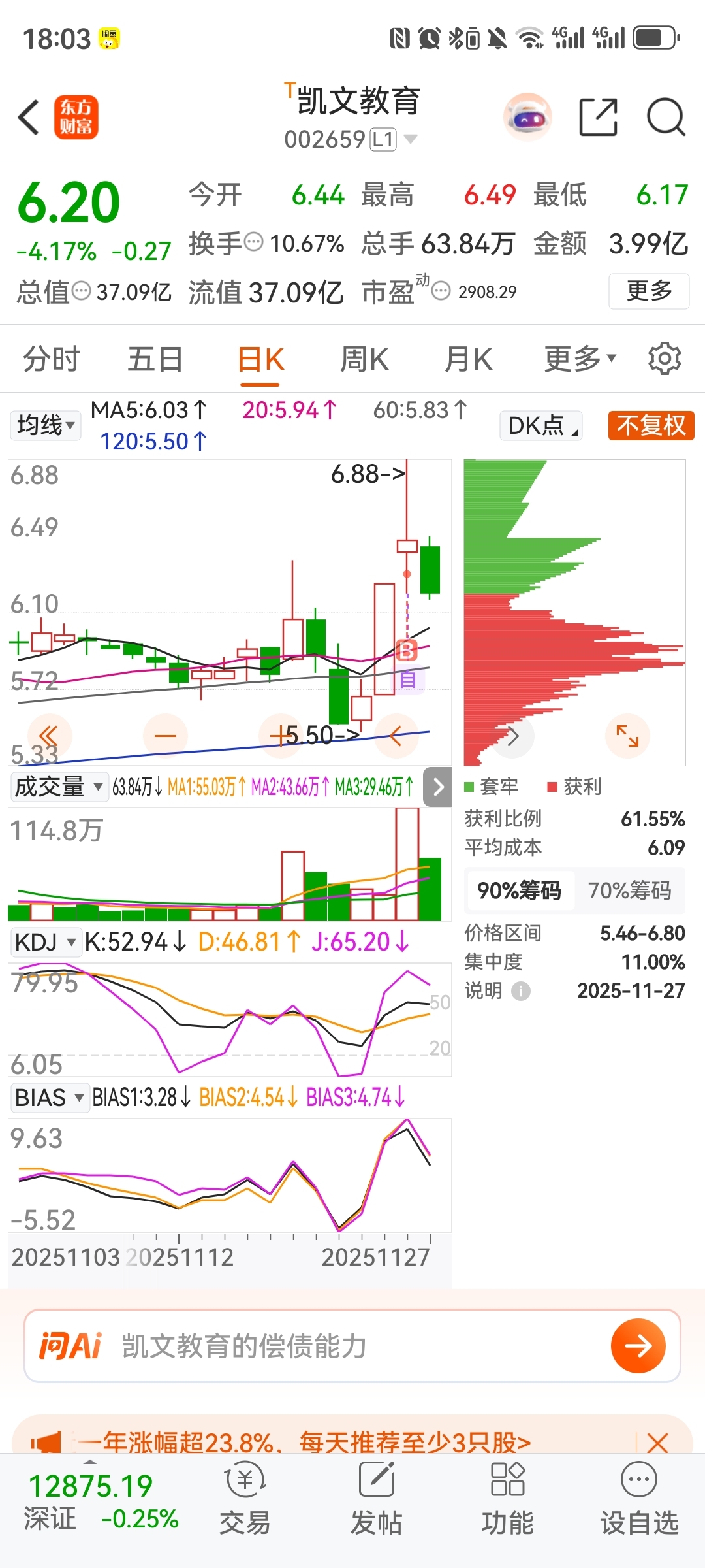 $凯文教育(SZ002659)$ 今天很明显的承接分时,大家不要慌,我还没走,我走了会准时发帖关注我